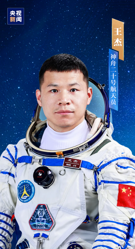 王杰,男,汉族,籍贯内蒙古巴彦淖尔,博士学位。1989年9月出生,2021年1月入伍,2009年6月加入中国共产党,现为中国人民解放军航天员大队四级航天员,陆军上校军衔。曾任中国航天科技集团有限公司工程师。2020年9月入选为我国第三批航天员。经全面考评,入选神舟二十号载人飞行任务乘组。