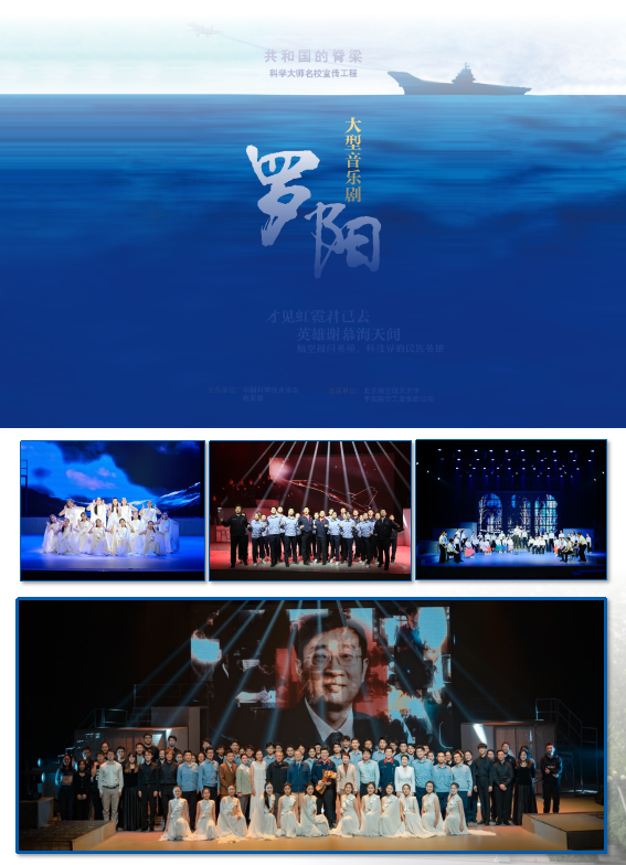 音乐剧《罗阳》是一部以航空英雄罗阳为原型的音乐剧作品,以塑造、宣传罗阳同志作为科技界民族英雄的崇高形象和精神。音乐剧《罗阳》将甘于专研、敢于奉献的罗阳精神通过艺术的方式传承下去,孕育北航人的空天情怀。
