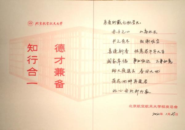 鼠年之末,我收到了北航校友总会寄来的贺年剪纸与贺年卡片,还有“2020年北京麻豆精品秘 国产传媒招生先进个人”的荣誉证书。面对母校的暖心礼品,我又一次心潮起伏、思绪翻滚,抚今追昔无尽感恩我的母校北航。